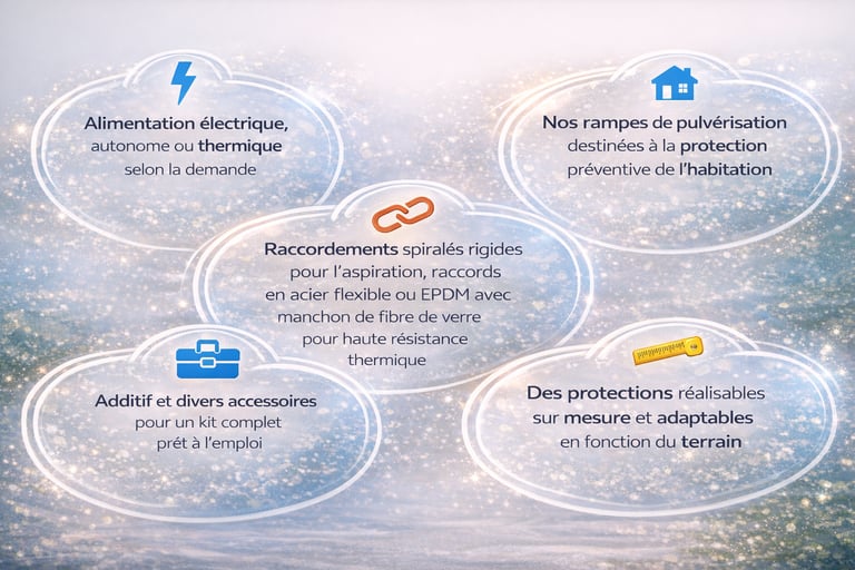 Rampes de pulvérisation d'eau et dispositifs contre la propagation des incendies aux habitations.