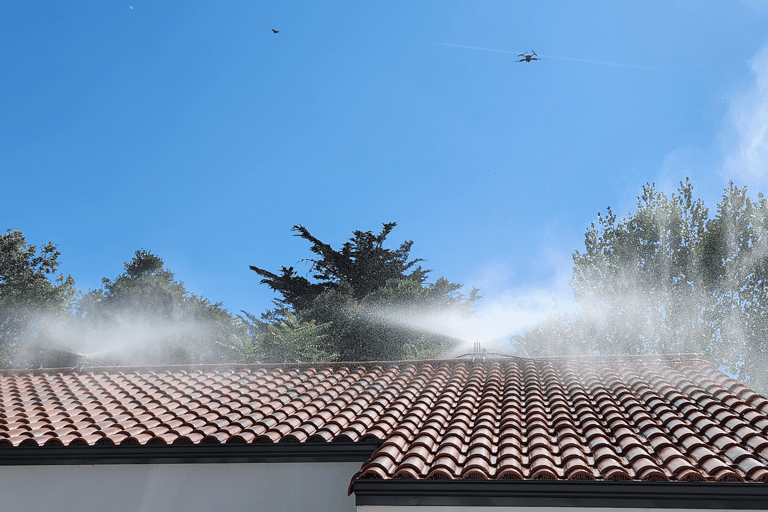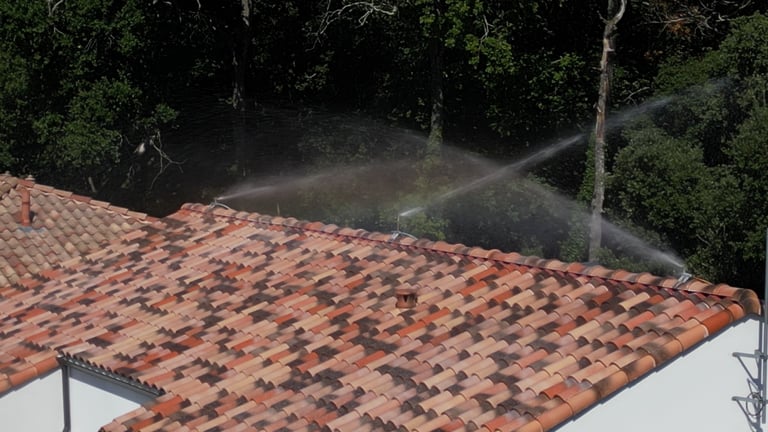Rampes de pulvérisation d'eau et dispositifs contre la propagation des incendies aux habitations.